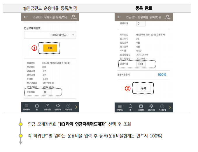 하위펀드 운용비율을 등록합니다. 운용비율의 합계는 반드시 100%가 되어야합니다.
