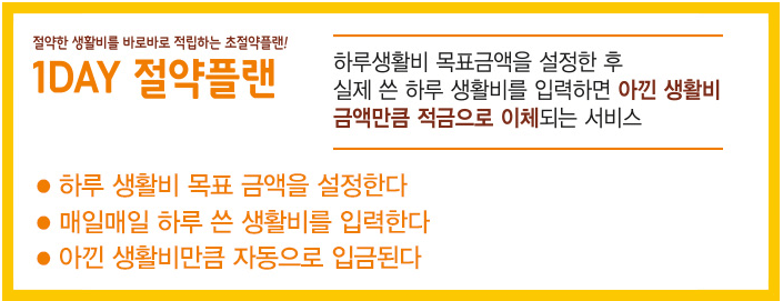 원데이 절약플랜은 절약한 하루 생활비를 매일 입금하는 상품입니다.
