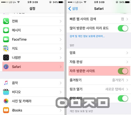 아이폰 자주가는사이트 삭제/끄기 방법