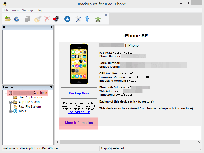 아이폰에 대한 간단한 정보가 나타나는데요.? ‘More Information’을 선택합니다.