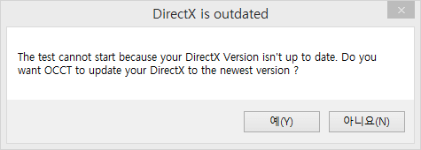 만약 PC에 설치된 DirectX가 최신버전이 아니라면 다음과 같은 메시지가 나타납니다. ‘예’를 눌러 최신 버전으로 업데이트합니다.