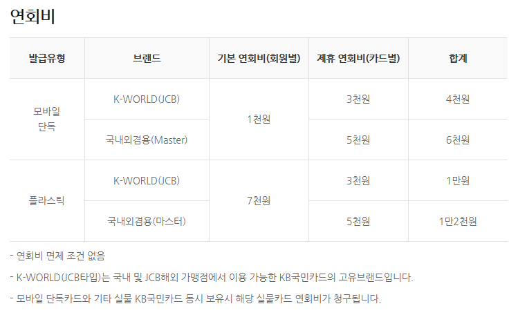 국내 전용은 모바일 단독 4천 원, 플라스틱 1만 원이며 국내외겸용(MASTER)는 모바일 단독 6천 원, 국내외겸용(MASTER) 1만2천 원입니다.