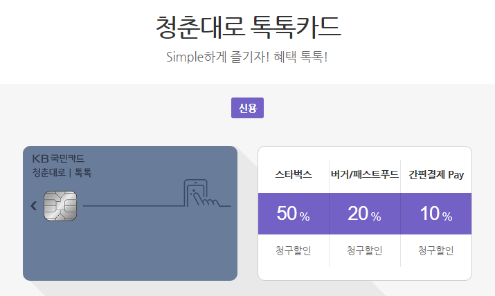 kb국민 청춘대로 톡톡카드 혜택 – 스타벅스 최대 60% 할인