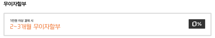 또 다른 혜택으로 5만 원 이상 결제 시 2~3개월 무이자할부 서비스를 제공합니다.