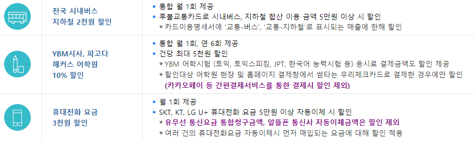 어떠한 혜택들이 있고, 특별한 점들이 있는지 우리카드 홈페이지를 토대로 포스팅을 했습니다.