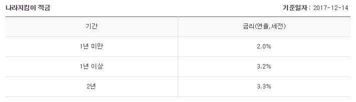 기본 금리는 가입 기간에 따라 1년 미만 2.0%, 1년 이상 3.2%, 2년 3.3%입니다.