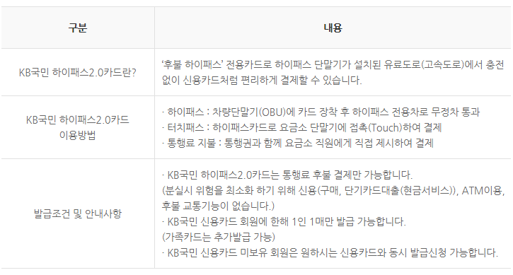 국민 하이패스 후불카드 소개 – 하이패스 2.0