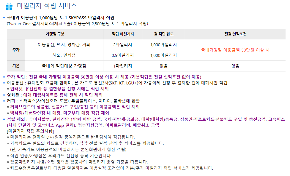 우리카드 수퍼마일(SKYPASS) 혜택