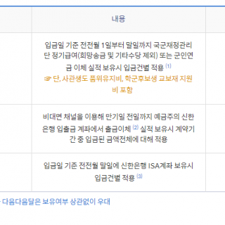 시중 은행에서는 군인을 위한 적금을 제공하고 있습니다. 군인적금은 일반 적금에 비해 좋은 혜택들을 받을 수 있는데요. 여러 은행 중 신한은행의 군인적금에 대해 알아보겠습니다. 신한은행에는 군 간부가 대상인 ‘신한 군인행복적금’...